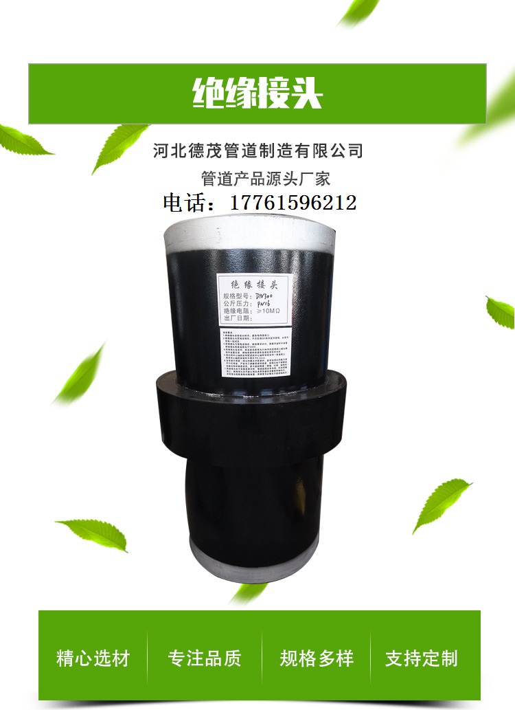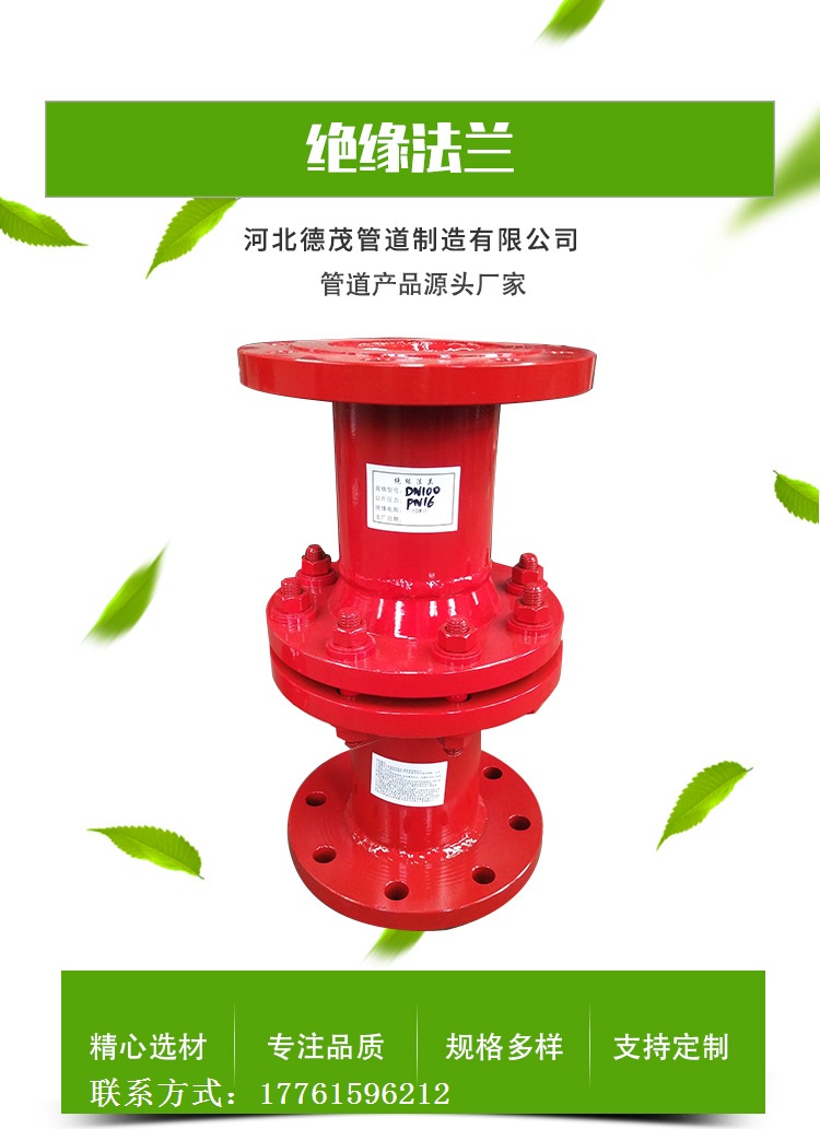 我公司专业生产高质量的高压绝缘接头SY/T0516-2016。严苛执行绝缘接头标准化绝缘法兰,参阅国外产品结构,并使用奇特的设计克服了绝缘法兰的刚性小,不易泄露,不易埋藏,寿命短等缺陷。实现了无泄漏功用,绝缘接头的使用寿命与支撑管道的使用寿命相同。我公司产品的主要特性是体积小,完整性强,直埋,免维护,绝缘电阻大,绝缘效果好,是绝缘法兰的升级产品。